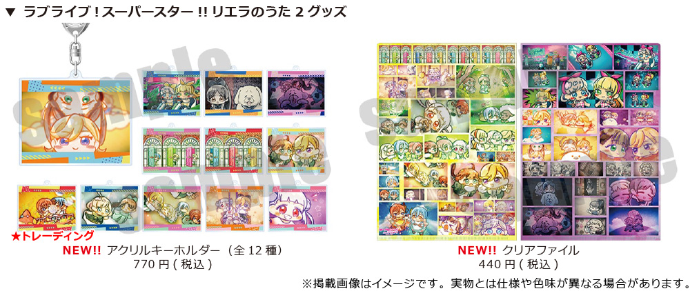 通販サイトでは、清瀬赤目氏描き下ろし「WE WILL!!」衣装イラスト商品、または「リエラのうた2」イラスト商品を含む商品金額合計3,300円(税込)のご注文ごとにブロマイドを1枚ランダムでお付けいたします。