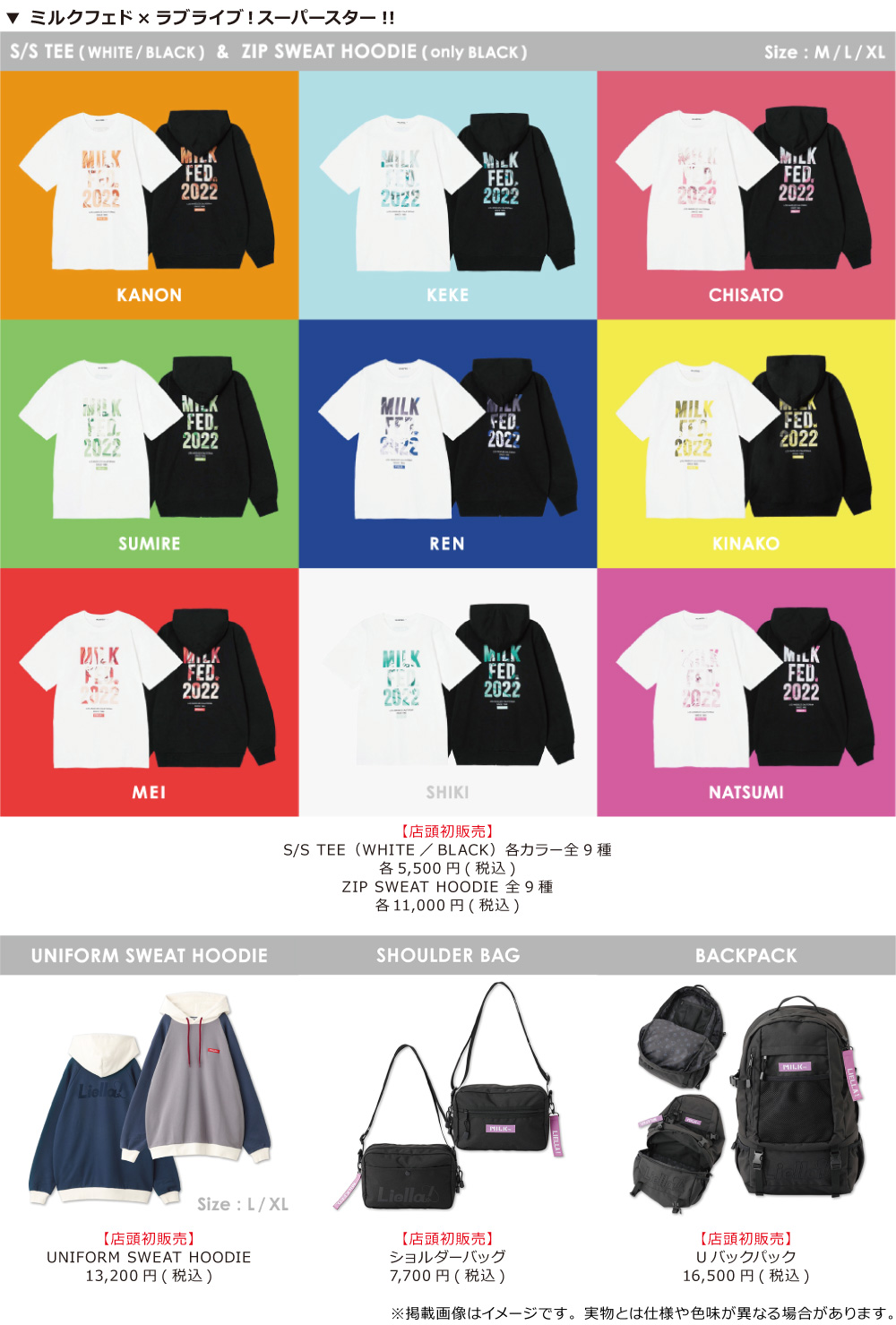 そして、大好評のWhite atelier BY CONVERSEコラボスニーカー、MILKFED.コラボアパレルを店頭初販売いたします。購入特典は「リエラのうた2」の可愛らしいイラストよりセレクトしたブロマイドになります!
