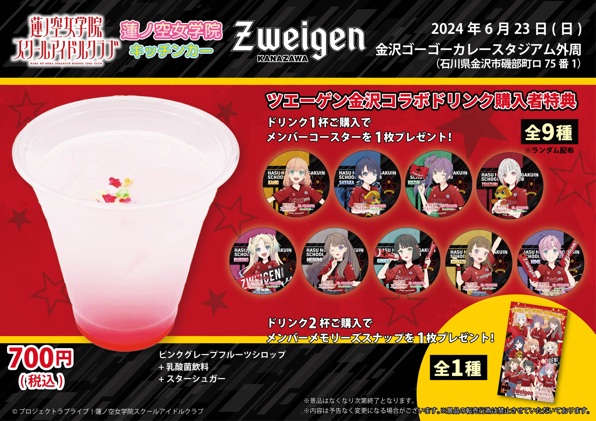ラブライブ!蓮ノ空女学院スクールアイドルクラブ×ツエーゲン金沢」のコラボマッチにて、コラボドリンクの販売が決定!