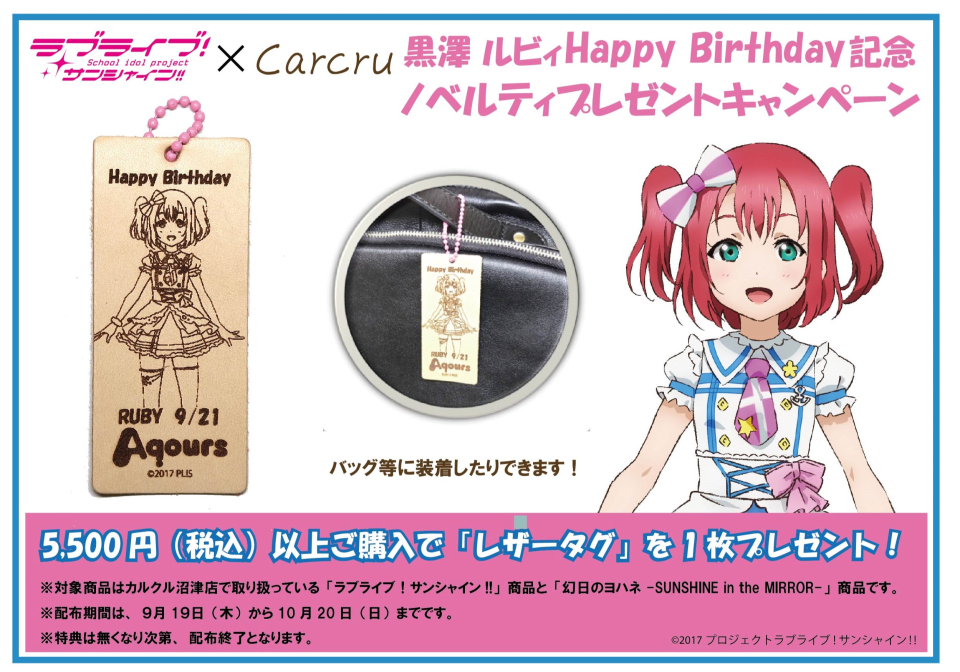 カルクルより桜内 梨子・黒澤 ルビィバースデー記念ノベルティ配布のお知らせ