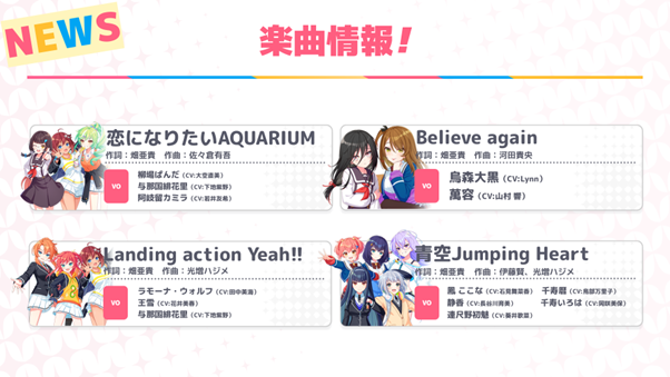 今回のコラボで追加されるカバー楽曲は、下記の4曲が順次追加されていきます!