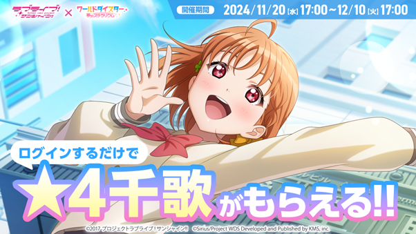 コラボ開始日より、ログインボーナスにて★4の千歌をプレゼントします!